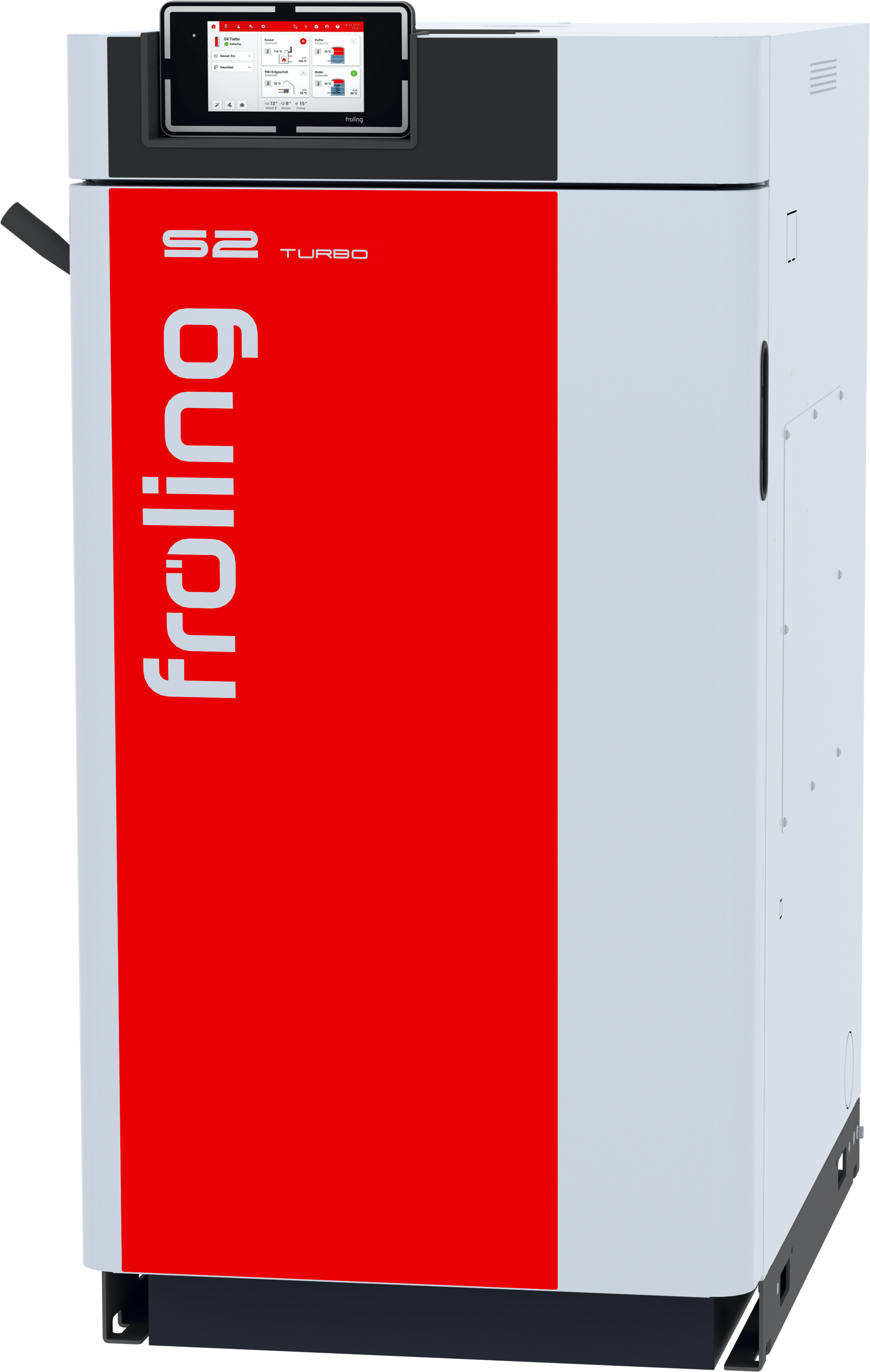 Trotz seiner kompakten Abmessung bietet der Fröling S2 Turbo einem Füllraumvolumen von 80 Litern für bis zu 56 cm lange Holzscheite. Bequem von vorne eingelegt, reicht eine komplette Füllung für eine Brenndauer von ca. 4 Stunden und einen Nachlegeintervall von bis zu 24 Stunden.